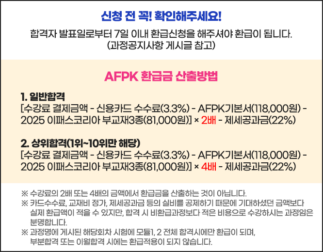 ♥합격만해도환급♥AFPK상위10위 400%, 일반 200% 현금환급★ 20%할인ing★